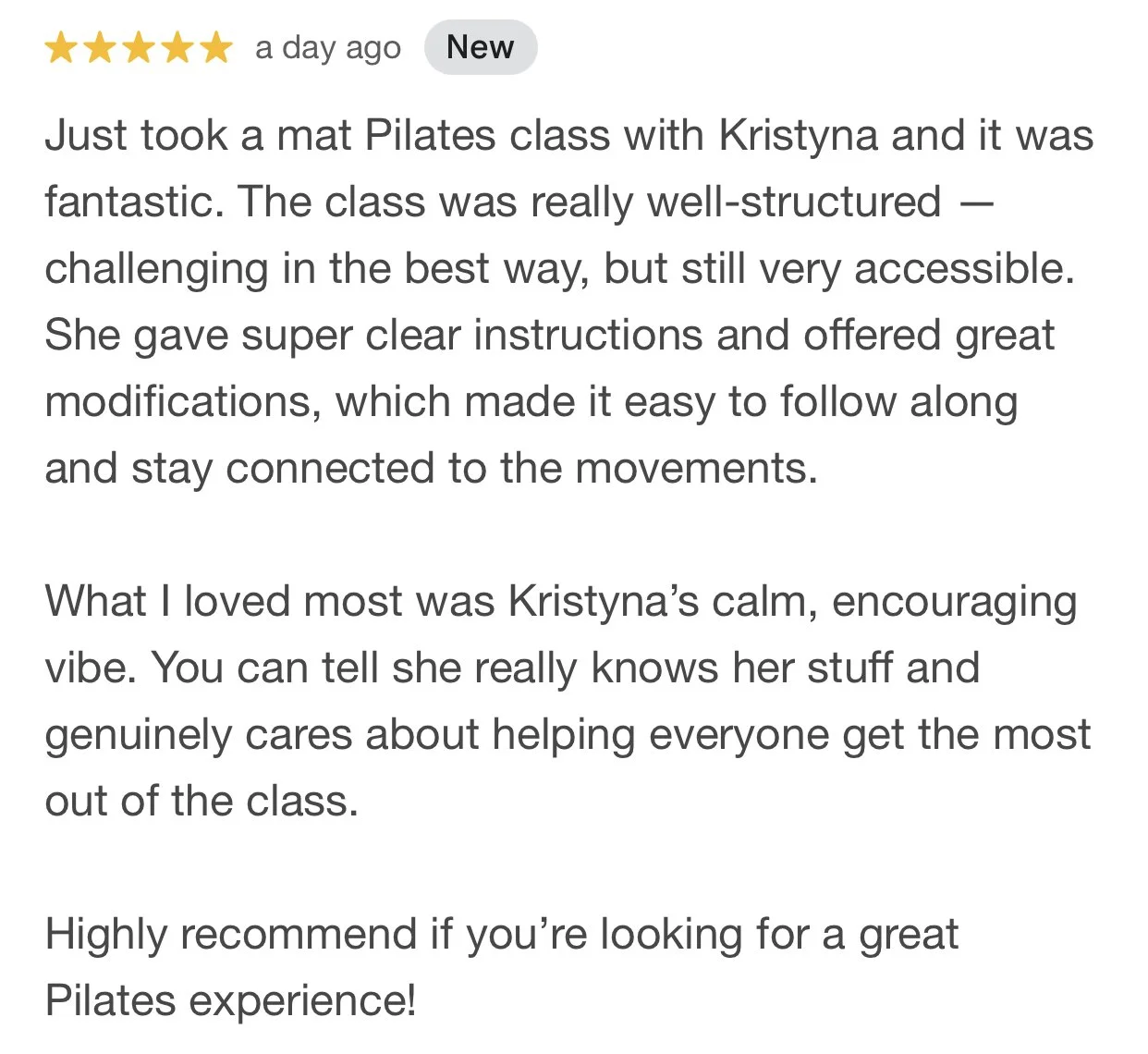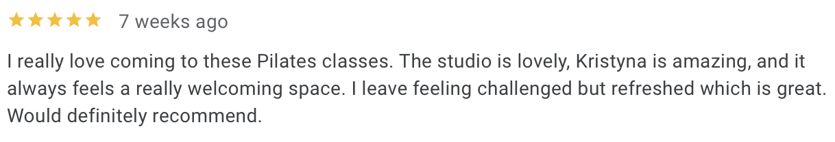 Pilates & Flexibility classes led by certified instructor Kristyna
